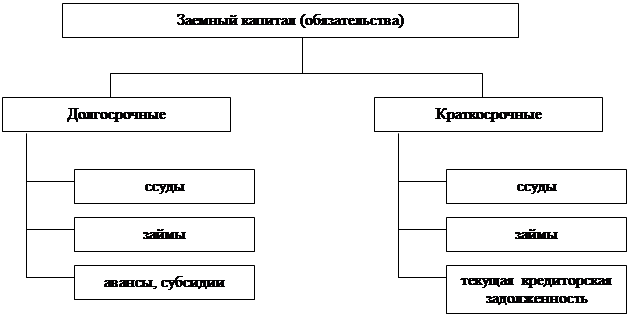 Заемный капитал представляет собой часть стоимости имущества организации, приобретенного в счет обязательства вернуть поставщику, банку, другому заимодавцу деньги либо ценности, эквивалентные стоимости такого имущества. В составе заемного капитала различают краткосрочные и долгосрочные заемные средства, кредиторскую задолженность (привлечённый капитал). Структура заёмного капитала раскрыта на рис.3.