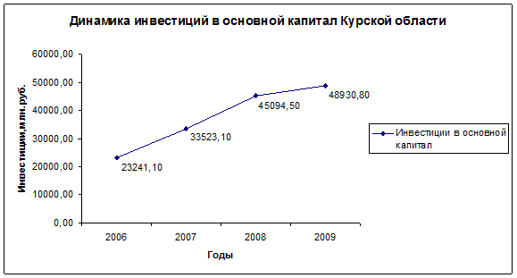 В аналитической части будут рассмотрены аналитические показатели ряда динамики инвестиций в основной капитал Курской области за 2006–2009 гг.