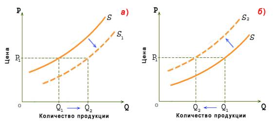 | 4. | Если предложение падает | Кривая предложения смещается влево | цена ↑, объем ↓ |