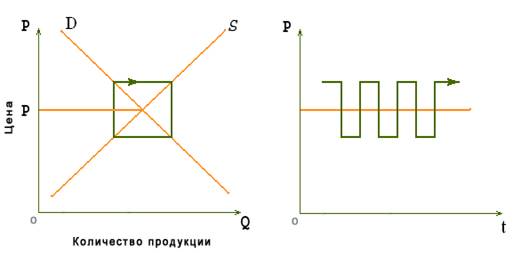 Во втором рыночная цена неопределенно варьирует вокруг цены равновесия в известных пределах (рис. 3.6.).