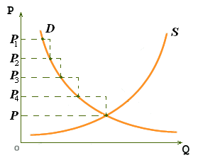 Нормальная цена – это не средняя цена определенного периода, а цена в конце того периода, в котором изменилось предложение. Этот процесс отражен на графике (рис. 3.8.), где цены Р1 , Р2 , Р3 , Р4 приближаются к нормальной цене Р.