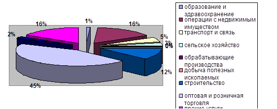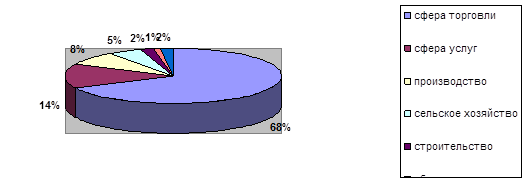 Удельный вес малых предприятий в промышленности снизился до 24,1%, в строительстве – до 27,6%. Одновременно происходило увеличение доли малых предприятий, занятых в торговле и общественном питании – до 17,6%, в посредничестве – до 14%.