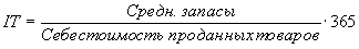 Данный показатель рассчитывается, также, как среднее число дней, в течение которого запасы находятся на складе. В этом случае, формула выглядит следующим образом: