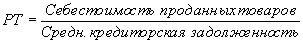 Коэффициент оборачиваемости кредиторской задолженности (Payables Turnover) - финансовый показатель, рассчитываемый как отношение себестоимости проданных товаров к среднегодовой величине кредиторской задолженности.
