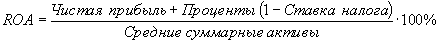 Коэффициент рентабельности активов (Return On Assets, ROA) - отношение чистой прибыли компании без учета процентов по кредитам к ее суммарным активам.