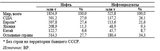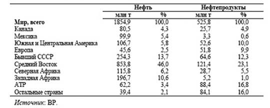 Таблица 2.8. Структура мирового экспорта нефти и нефтепродуктов в 2004г.