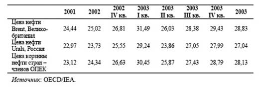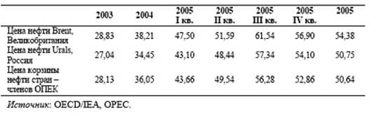 Таблица 2.14. Мировые цены на нефть в 2003-2005гг., долл./барр.