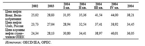 Таблица 2.13. Мировые цены на нефть в 2002-2004гг., долл./барр.