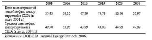 Таблица 3.4. Мировые цены на нефть в 2005-2030гг., долл./барр. (базовый вариант)