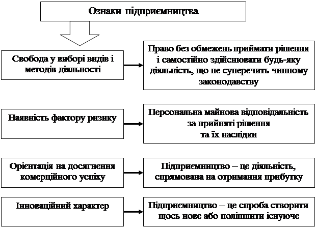 Рис. 1.1. Ознаки підприємницької діяльності.