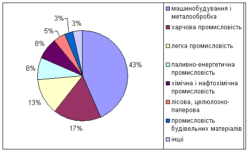 З даного рисунка видно, що на Львівщині харчова промисловість займає 2 місце за охопленням ринку і становить 17% від загального, що є доволі високим показником. Випереджає її лише машинобудівна й металообробна галузь.