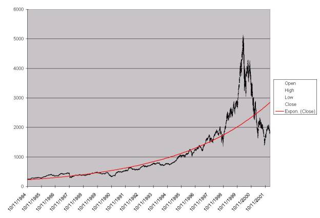 Вот как все виделось восхищенному наблюдателю динамики роста индекса Nasdaq вплоть до 13 марта 2000 г.