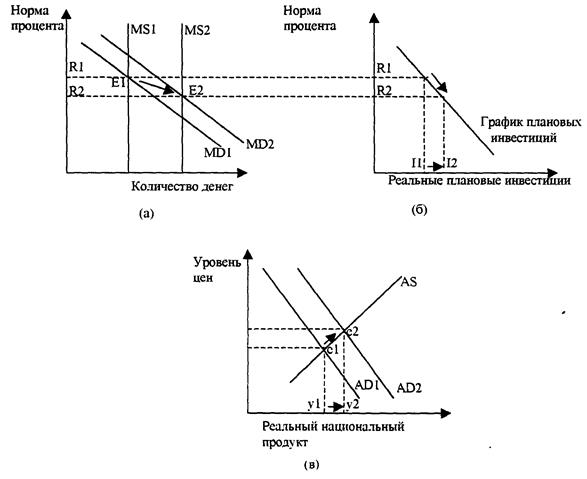 1. Монетаризм (Чикагская школа). Согласно данной теории количество денег в обращении является определяющим фактором хозяйственной конъюнктуры, поскольку существует прямая зависимость между изменениями денежной массы в обращении и величиной валового национального продукта.