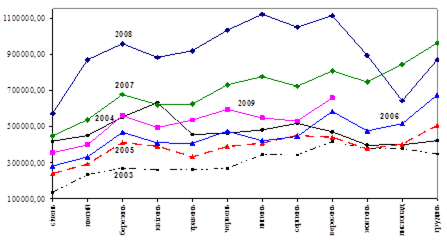 Експорт продукції АПК щомісяця (тис.дол.США)