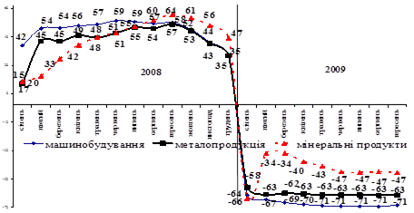 Імпорт машинобудівної, металопродукції та мінеральних продуктів, кумулятивно (з початку року) до відповідного періоду попереднього року (%)