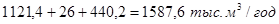 3. Годовой расход газа на горячее водоснабжение – 1121,4 тыс.м3 /год;