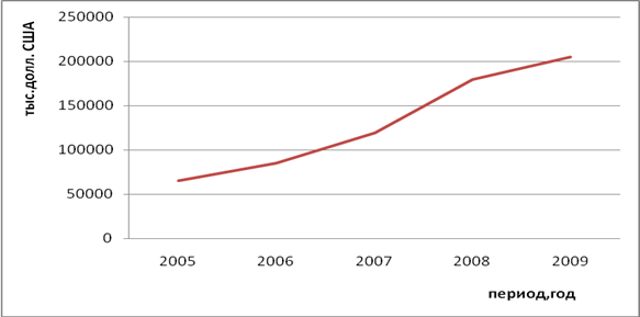 На рисунке 3.1 представлена динамика объемов продаж продукции предприятия за период 2005-2009 гг.