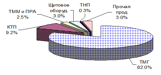 Как видно из рисунка 3.2, по результатам 2009 г. удельный вес объема продаж силовых трансформаторов составил 82,0%; комплектных трансформаторных подстанций – 9,2%.