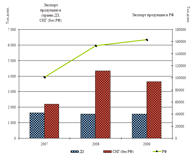 Как видно из таблицы 3.2, в 2009 г. объем продаж продукции в денежном выражении составил 205018,7 тыс. долл. и превысил уровень прошлого года на 14%. Положительная тенденция развития внутреннего рынка сбыта обусловлена повышением деловой активности организаций топливно-энергетического, строительного комплексов (более 70%) и других отраслей промышленности; повышением инвестиционной активности компаний строительного комплекса (жилищное строительство). В 2009г. поставка продукции предприятия на внутренний рынок осуществлялась в основном по прямым поставкам, при этом услуги посреднических структур не применялись.