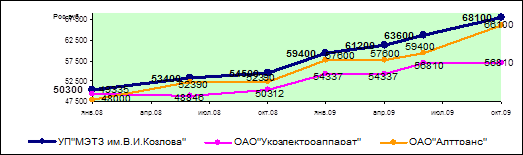 Цены УП «МЭТЗ им. В.И.Козлова» на силовые трансформаторы существенно превышают цены на аналогичную продукции основных предприятий-конкурентов. Однако, как генеральный представитель ОАО «Укрэлектроаппарат» в г.Москва - ПГ «АСВ-Техника», так и официальный представитель ОАО «Алттранс» в г.Москва - ООО «Торг-Энерго» в своих прайс-листах указывают примерно такие цены, как и УП «МЭТЗ им. В.И.Козлова», т.е. ориентируются на лидера.