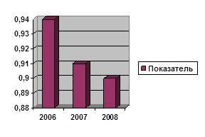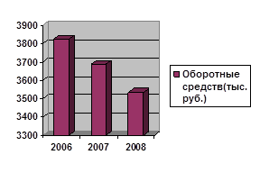 1. Оборотные средства предприятия в период 2006-2008г.г. стабильно падают до 3534 тыс.руб.