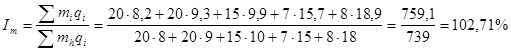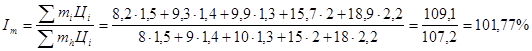4. В среднем нормы расхода металла на заводе при изготовлении деталей выполняются. Фактический средний расход металла на одну деталь составляет 102,71% нормы, т.е. перерасход металла равен 2,71%.