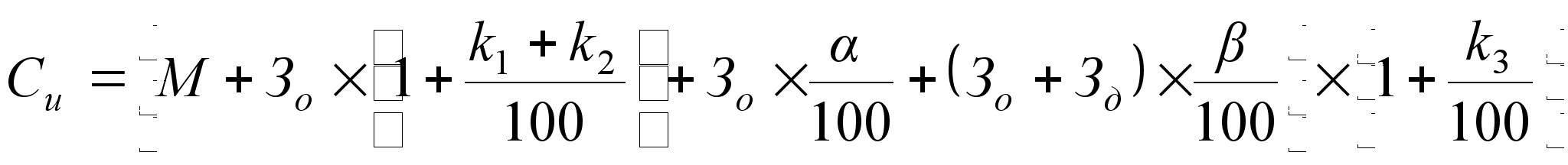 Плановые калькуляции обычно составляются для всех видов продукции, предусмотренных в газовом плане производства и реализации. Калькулирование производится по статьям калькуляции. Важным моментом является то, что на отечественных предприятиях до настоящего времени калькулируется полная себестоимость единицы продукции. Это значит, что все косвенные затраты подлежат обязательному распределению между отдельными видами продукции (при многономенклатурном производстве). За базу распределения чаще всего принимается заработная плата рабочих. Одна из возможных формул, по которой можно определить полную себестоимость единицы продукции, приведена ниже (взята из 5, с. 246):