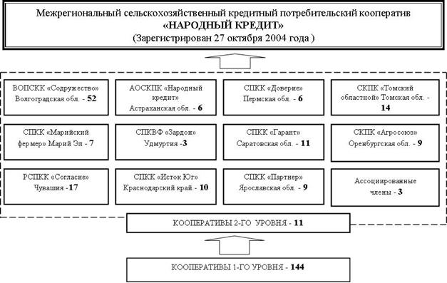 Схема существующей многоуровневой системы сельскохозяйственной кредитной потребительской кооперации в России[14]