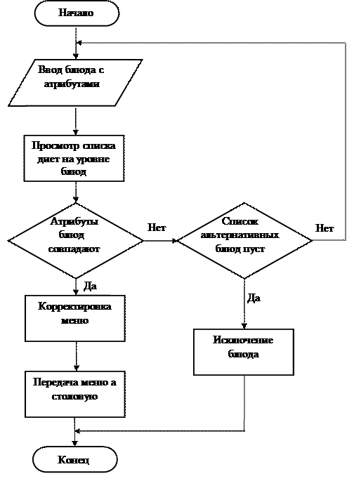 В третьей главе описан метод Блочных альтернативных сетей, представлена схема функционирования подсистемы «Диетпитание» на БАС.