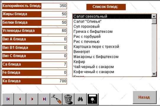 3.2.2. Выбор блюд на день методом БАС………………………99