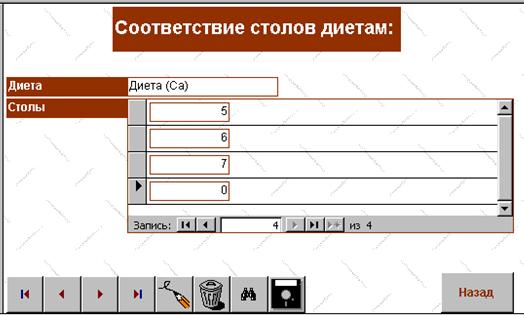 Четвертая глава содержит алгоритм создания базы данных подсистемы «Диетпитание», ее описание и руководство пользователя.