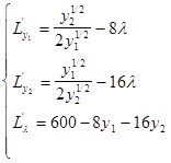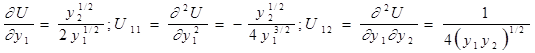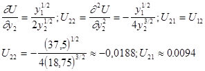 Ну а теперь вычислим оптимальные значения спроса на блага y1 , y2 , для исходных данных.