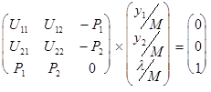 y1 p1 +y2 p2 =M