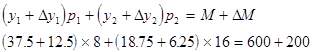 Так как М=600, р1 =8, р2 =16, то имеем