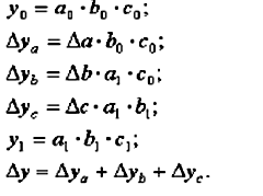 Для мультипликативных моделей типа у = а. в . с методика анализа следующая: