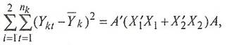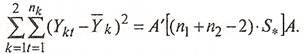 - номер наблюдения в группе). Внутригрупповая вариация может быть измерена суммой квадратов отклонений: