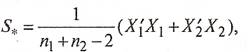 - транспонированная матрица отклонений наблюдаемых значений исходных переменных от их средних величин в первой группе