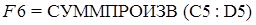 Искомые х1 и х2 обозначим для начала через 0 в ячейках C5 и D5, соответственно. Далее, воспользуемся функцией «суммпроизв (x; y)» для ячейки F6, в которой и запишем определенную выше целевую функцию: