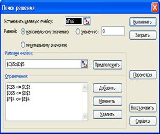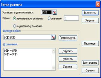 Рисунок 2 – Выставление параметров и условий сервиса «Поиск решения»