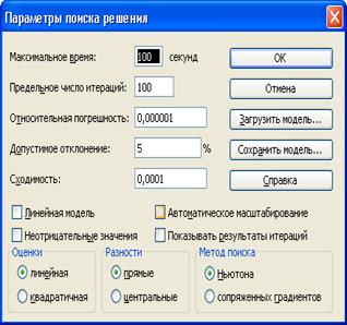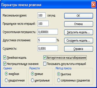 Рисунок 3 – Выбор параметров расчета сервиса «Поиск решения»