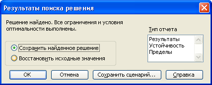 Рисунок 6 – Окно функции «Поиск решения» с выставленными значениями