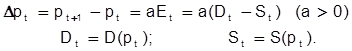 Процес досягнення рівноваги в цьому випадку може бути представлений за допомогою вивчення послідовності “торгових днів”. При цьому вважається, що на початок торгового дня (t+1) відома система цін