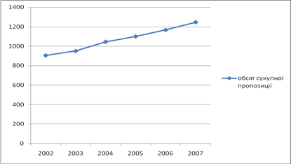 Рис. 3.3 Динаміка обсягу пропозиції добувної галузі економіки України за 2002-2007 роки.