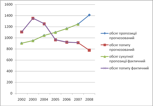 3.2 Прогнозування обсягу сукупного попиту та обсягу сукупної пропозиції добувної галузі економіки України на 2008