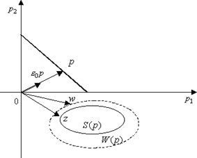 , где дополнительная n+1‑ая координата соответствует особому виду товара – «деньгам». Таким образом, размерность всех векторов спроса и предложения будет равна n+1. Вектор цен, соответственно, будет задан в пространстве