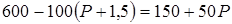 – равновесный объем продаж стоимостью 900. Налог с продажи, уплачиваемый покупателями, приводит к тому, что цена для них увеличивается на 1,5 и условие равновесия записывается как