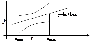Область прогнозов находится так: среди выборочных х находят xmin и xmax . Отрезок прямой, заключенный между ними называется областью прогнозов.
