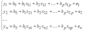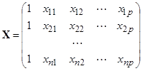 Чтобы записать систему (2) в матричном виде, вводим матрицу X , составленную из множителей при коэффициентах b1 , b2 , …, bp .