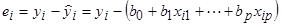 ei – случайные отклонения (остатки), наличие которых объясняется тем, что выборочные точки не ложатся в точности на плоскость (1), а случайным образом разбросаны вокруг нее.