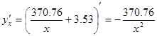 Находим параметры исходной нелинейной модели: а=b1 =370.76; b = b0 =3.53.
